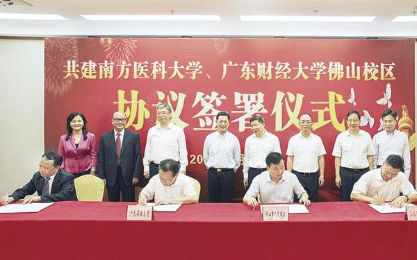 2016年,《珠三角国家自主创新示范区建设实施方案》和《佛山国家自主创新示范区发展规划纲要》先后出台。佛山要建成示范引领区,急需像广财大这样较高水平的应用型大学助力,而作为广东省首批应用型试点高校的广财大也需要广阔的用武之地。年底,省教育厅、佛山市、三水区与我校动议合作共建佛山校区。今年5月,共建佛山校区协议签署仪式举行,省教育厅厅长景李虎、佛山市市长朱伟、三水区委书记黄福洪、我校校长于海峰分别代表省市区校签署协议。根据协议,四方在校区共建“四院一基地”,突出实践创业、校政行企协同育人、国际化三个办学特色。共建佛山校区,是省市区校四方推进高校更好服务地方经济社会发展的新战略,是四方贯彻落实习近平总书记对广东重要批示精神的重大举措,也是我校加快推进有特色高水平应用型财经大学建设的大招实招。