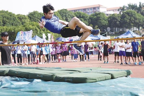 10月27日下午,校运会男子跳高比赛项目拉开帷幕。从试跳开始,每一个参赛选手的目光都认真地盯着那一根挑战自我的杆子,且慎重地计算着脚到垫子的距离,然后卯足了劲地往前冲去,顺势单脚起跳。