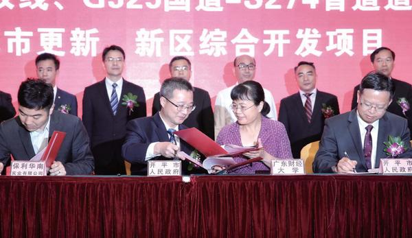 本报讯(记者蒋晓薇)5月10日上午,2018年开平市招商引资引智大会暨重大项目奠基剪彩仪式在该市举行。我校党委书记黄晓波、副校长王廷惠、党办校办主任陈光团、旅游管理与规划设计研究院院长张伟强等一行出席仪式。王廷惠代表学校与开平市政府签订了市校合作框架协议,黄晓波和张伟强受聘为开平市决策咨询专家。根据协议,我校与开平市政府本着“资源共享、优势互补、互惠互利、共同发展”的原则,通过决策咨询与服务、人才引进与培养、科研项目合作与开发等形式,共同开展政产学研合作,共建政产学研合作平台,促进人才教育培养、科技成果转化及地方经济社会发展。